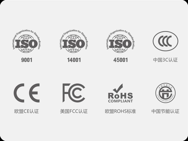 Certifications are more than just labels—they are the core principles that guide every aspect of our operations.We are proud to hold ISO 9001, ISO 14001, and ISO 45001 certifications, and our products comply with CE, FCC, CCC, RoHS, and energy efficiency standards. Our organization and products rigorously adhere to these requirements and undergo regular audits by accredited certification bodies. Additionally, we provide certification application services on behalf of our customers. -